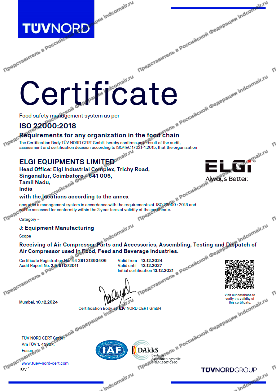ELGi предлагает широкий ассортимент оборудования для очистки и подготовки сжатого воздуха, что делает его безопасным для окружающей среды и конечных потребителей.