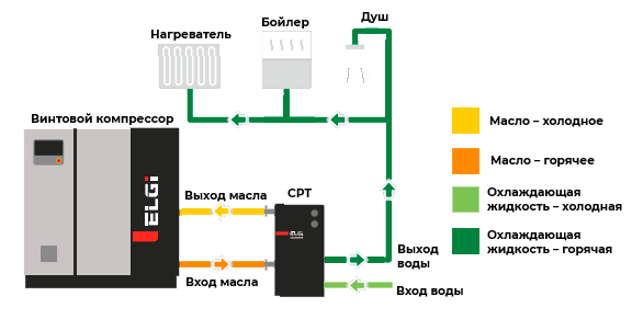 Системы рекуперации тепла: удивительный факт, что 100% электроэнергии (энергии) преобразуется в тепловую энергию во время процесса сжатия в воздушном компрессоре, и вся тепловая энергия идет впустую, если не используется по назначению.