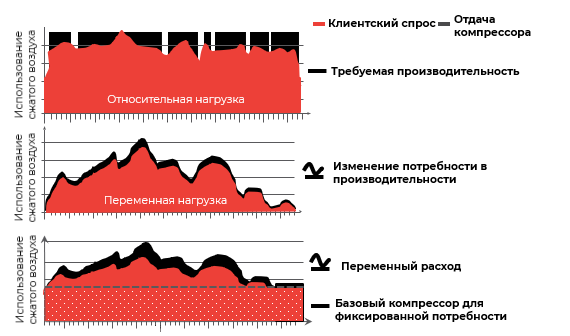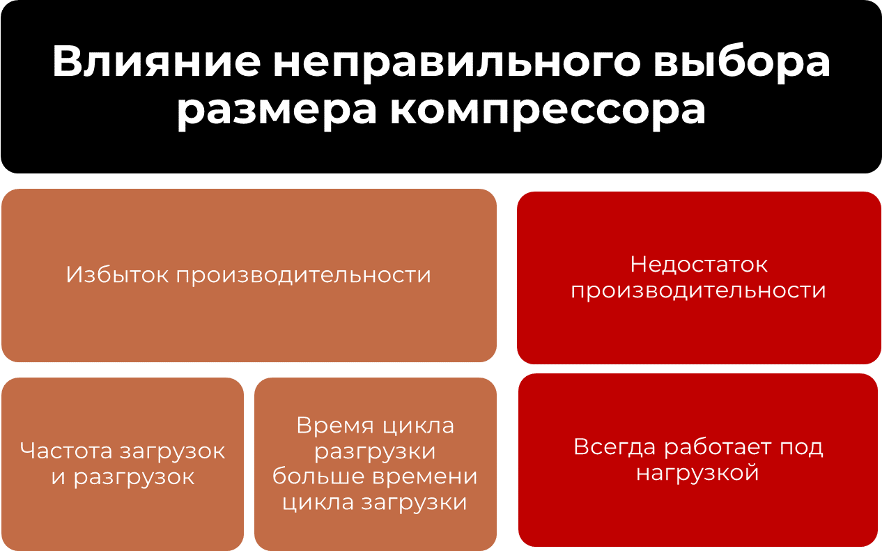 Точно так же компрессоры увеличенного размера (с большей производительностью) будут работать в условиях разгрузки в течение более длительного времени и будут тратить энергию впустую.